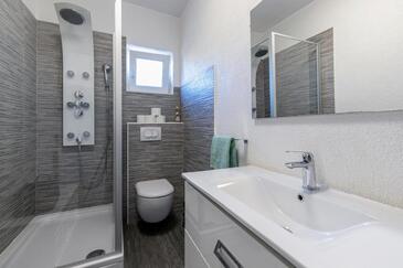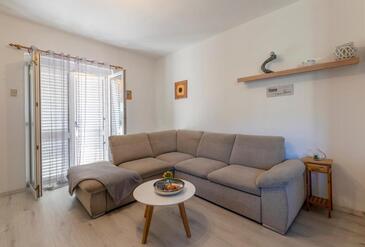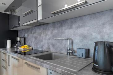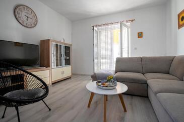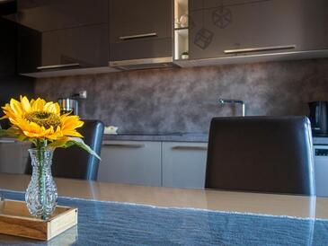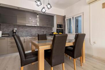 Az Apartman 5 főt tud fogadni. Az ágyak a/az 2 hálószobában, és a nappaliban/ben vannak, melynek méretei 80m2. A forró nyári estéket a vendégek saját teraszukon élvezhetik. Az apartmanból tengerre néző kilátás nyílik. A közös barbecue-helyet a vendég szabadon használhatja. A lefoglalt szállásegység bizonyos helyiségei nem összekötöttek.