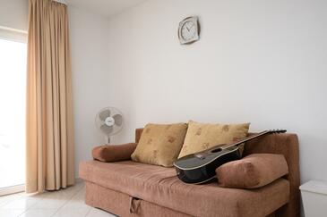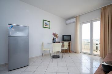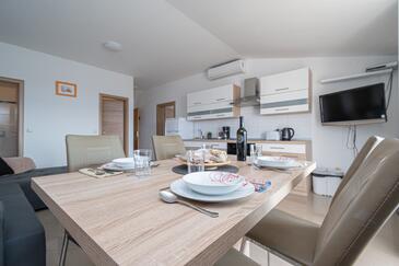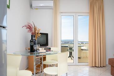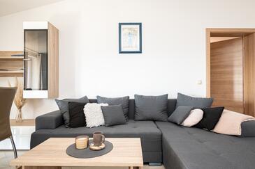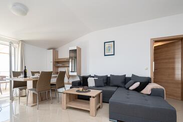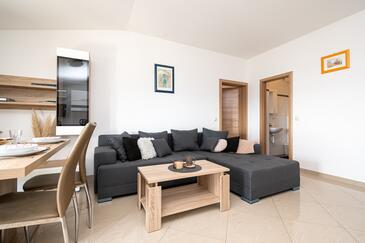Az Apartman 4 főt tud fogadni. Az ágyak a/az 1 hálószobában, és a nappaliban/ben vannak, melynek méretei 45m2. A forró nyári estéket a vendégek saját teraszukon élvezhetik. Az apartmanból tengerre néző kilátás nyílik. A közös barbecue-helyet a vendég szabadon használhatja. A vendégek itt tartózkodásuk ideje alatt használhatják a közös medencét.