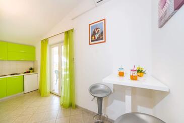 Az Apartman 3 főt tud fogadni. Az ágyak a/az 1 hálószobában vannak, melynek méretei 22m2. A forró nyári estéket a vendégek saját teraszukon élvezhetik. A közös barbecue-helyet a vendég szabadon használhatja. A szállásegységbe lehetséges háziállatot hozni felár ellenében.