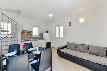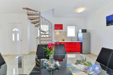 Az Apartman 5 főt tud fogadni. Az ágyak a/az 2 hálószobában, és a étkezőban/ben vannak, melynek méretei 57m2. A forró nyári estéket a vendégek saját balkonukon élvezhetik. Az apartmanból tengerre néző kilátás nyílik. A közös barbecue-helyet a vendég szabadon használhatja. A szállásegységbe lehetséges háziállatot hozni felár ellenében.