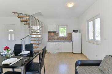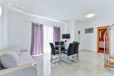 Az Apartman 5 főt tud fogadni. Az ágyak a/az 2 hálószobában, és a étkezőban/ben vannak, melynek méretei 57m2. A forró nyári estéket a vendégek saját balkonukon élvezhetik. Az apartmanból tengerre néző kilátás nyílik. A közös barbecue-helyet a vendég szabadon használhatja. A szállásegységbe lehetséges háziállatot hozni felár ellenében.