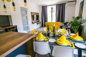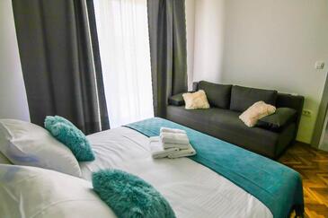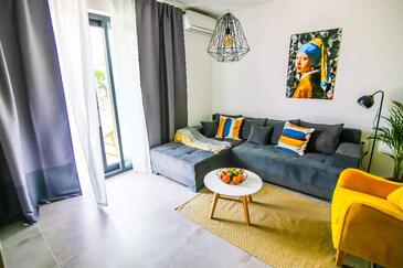 Az Apartman 6 főt tud fogadni. Az ágyak a/az 2 hálószobában vannak, melynek méretei 78m2. A forró nyári estéket a vendégek saját teraszukon élvezhetik. Az apartmanból tengerre néző kilátás nyílik. A teljes élvezet és kikapcsolódás érdekében van saját barbecue hely is, csakis e szálláshely vendégei számára.