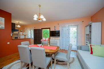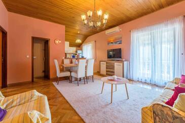Az Apartman 5 főt tud fogadni. Az ágyak a/az 2 hálószobában, és a nappaliban/ben vannak, melynek méretei 45m2. A forró nyári estéket a vendégek saját teraszukon élvezhetik. A közös barbecue-helyet a vendég szabadon használhatja.