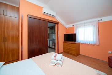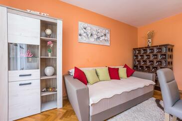 Az Apartman 5 főt tud fogadni. Az ágyak a/az 2 hálószobában, és a nappaliban/ben vannak, melynek méretei 57m2. A forró nyári estéket a vendégek saját teraszukon élvezhetik. A közös barbecue-helyet a vendég szabadon használhatja.