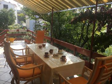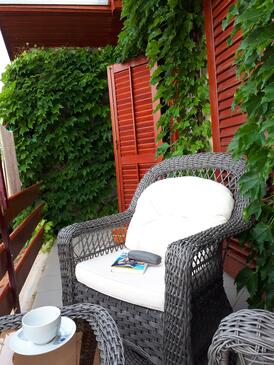 Az Apartman 6 főt tud fogadni. Az ágyak a/az 3 hálószobában vannak, melynek méretei 54m2. A forró nyári estéket a vendégek saját teraszukon élvezhetik. A közös barbecue-helyet a vendég szabadon használhatja. A szállásegységbe lehetséges háziállatot hozni felár ellenében.