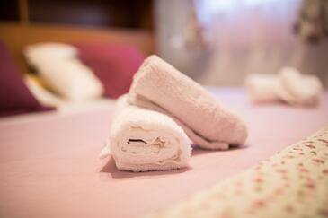 Az Apartman 4 főt tud fogadni. Az ágyak a/az 2 hálószobában vannak, melynek méretei 51m2. A forró nyári estéket a vendégek saját balkonukon élvezhetik. Az apartmanból tengerre néző kilátás nyílik. A közös barbecue-helyet a vendég szabadon használhatja. A szállásegységbe lehetséges háziállatot hozni felár ellenében.