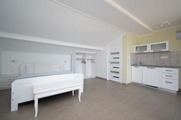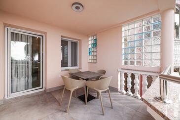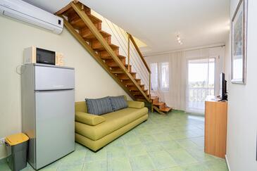 Az Apartman 4 főt tud fogadni. Az ágyak a/az 1 hálószobában, és a nappaliban/ben vannak, melynek méretei 44m2. A forró nyári estéket a vendégek saját teraszukon élvezhetik. Az apartmanból tengerre néző kilátás nyílik. A közös barbecue-helyet a vendég szabadon használhatja.