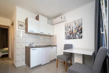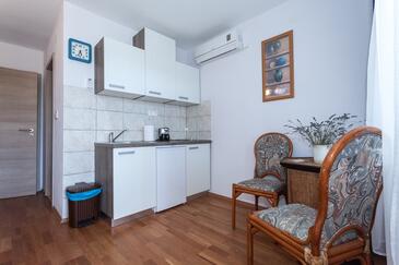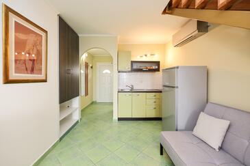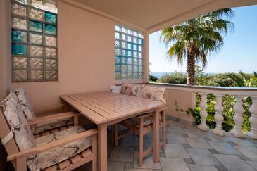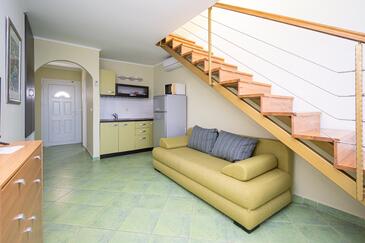 Az Apartman 4 főt tud fogadni. Az ágyak a/az 1 hálószobában, és a nappaliban/ben vannak, melynek méretei 44m2. A forró nyári estéket a vendégek saját teraszukon élvezhetik. Az apartmanból tengerre néző kilátás nyílik. A közös barbecue-helyet a vendég szabadon használhatja.