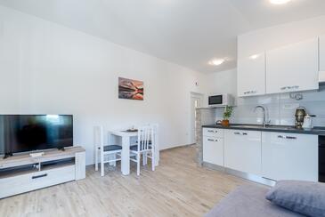 Az Apartman 2 főt tud fogadni. Az ágyak a/az 1 hálószobában vannak, melynek méretei 41m2. A forró nyári estéket a vendégek saját teraszukon élvezhetik. Az apartmanból tengerre néző kilátás nyílik. A közös barbecue-helyet a vendég szabadon használhatja.