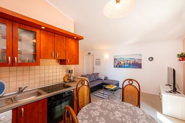Az Apartman 4 főt tud fogadni. Az ágyak a/az 2 hálószobában vannak, melynek méretei 44m2. A forró nyári estéket a vendégek saját teraszukon élvezhetik. Az apartmanból tengerre néző kilátás nyílik. A közös barbecue-helyet a vendég szabadon használhatja.