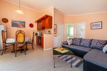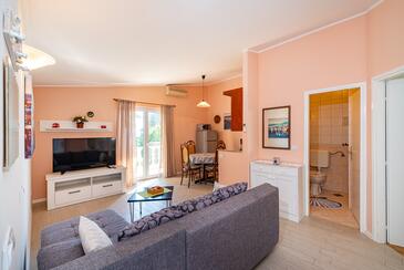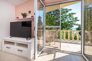 Az Apartman 4 főt tud fogadni. Az ágyak a/az 2 hálószobában vannak, melynek méretei 44m2. A forró nyári estéket a vendégek saját teraszukon élvezhetik. Az apartmanból tengerre néző kilátás nyílik. A közös barbecue-helyet a vendég szabadon használhatja.