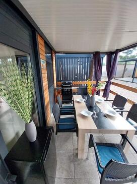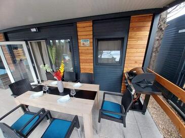 Az Ház 6 főt tud fogadni. Az ágyak a/az 2 hálószobában, és a nappaliban/ben vannak, melynek méretei 24m2. A forró nyári estéket a vendégek saját teraszukon élvezhetik. A közös barbecue-helyet a vendég szabadon használhatja.
