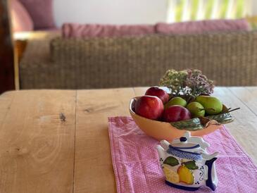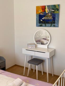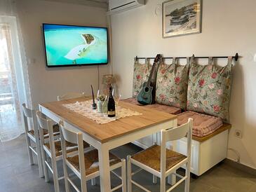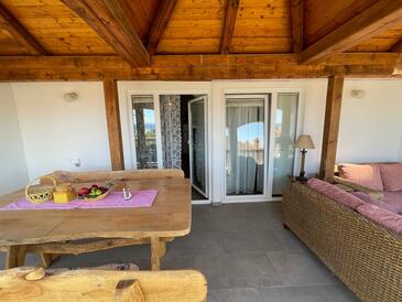 Az Apartman 6 főt tud fogadni. Az ágyak a/az 2 hálószobában, és a nappaliban/ben vannak, melynek méretei 68m2. A forró nyári estéket a vendégek saját balkonukon élvezhetik. Az apartmanból tengerre néző kilátás nyílik. A közös barbecue-helyet a vendég szabadon használhatja. A szállásegységbe lehetséges háziállatot hozni felár ellenében.