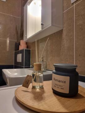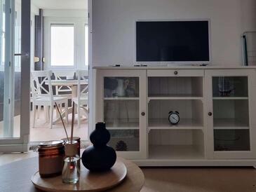 Az Apartman 4 főt tud fogadni. Az ágyak a/az 2 hálószobában vannak, melynek méretei 57m2. A forró nyári estéket a vendégek saját balkonukon élvezhetik. Az apartmanból tengerre néző kilátás nyílik.