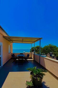 Az Apartman 4 főt tud fogadni. Az ágyak a/az 3 hálószobában vannak, melynek méretei 67m2. A forró nyári estéket a vendégek saját teraszukon élvezhetik. Az apartmanból tengerre néző kilátás nyílik. A szállásegységbe lehetséges háziállatot hozni felár ellenében.