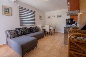 Az Apartman 4 főt tud fogadni. Az ágyak a/az 1 hálószobában, és a nappaliban/ben vannak, melynek méretei 34m2. A forró nyári estéket a vendégek saját teraszukon élvezhetik. Az apartmanból tengerre néző kilátás nyílik. A közös barbecue-helyet a vendég szabadon használhatja. A lefoglalt szállásegység vendégeinek az érkezés napján a helyszínen letétet kell fizetniük (az összeg a honlapon fel van tüntetve).