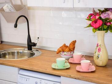 Az Apartman 4 főt tud fogadni. Az ágyak a/az 2 hálószobában vannak, melynek méretei 59m2. A forró nyári estéket a vendégek saját teraszukon élvezhetik. Az apartmanból tengerre néző kilátás nyílik. A közös barbecue-helyet a vendég szabadon használhatja. A vendégek itt tartózkodásuk ideje alatt használhatják a közös medencét. A szállásegységbe lehetséges háziállatot hozni, ennek költségét a foglalási díj tartalmazza.