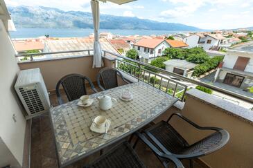 Az Apartman 4 főt tud fogadni. Az ágyak a/az 1 hálószobában, és a étkezőban/ben vannak, melynek méretei 42m2. A forró nyári estéket a vendégek saját teraszukon élvezhetik. Az apartmanból tengerre néző kilátás nyílik. A közös barbecue-helyet a vendég szabadon használhatja.