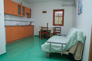 Az Apartman 4 főt tud fogadni. Az ágyak a/az 1 hálószobában, és a étkezőban/ben vannak, melynek méretei 28m2. A forró nyári estéket a vendégek saját teraszukon élvezhetik. A közös barbecue-helyet a vendég szabadon használhatja. A szállásegységbe lehetséges háziállatot hozni felár ellenében.