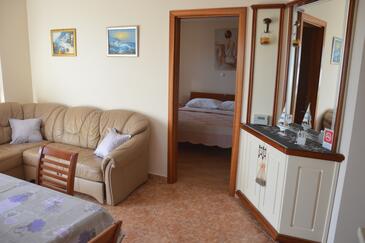 Az Apartman 4 főt tud fogadni. Az ágyak a/az 1 hálószobában, és a nappaliban/ben vannak, melynek méretei 37m2. A forró nyári estéket a vendégek saját teraszukon élvezhetik. Az apartmanból tengerre néző kilátás nyílik. A közös barbecue-helyet a vendég szabadon használhatja.