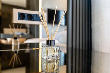 Az Apartman 2 főt tud fogadni. Az ágyak a/az 1 hálószobában vannak, melynek méretei 38m2. A forró nyári estéket a vendégek saját balkonukon élvezhetik. Az apartmanból tengerre néző kilátás nyílik. A közös barbecue-helyet a vendég szabadon használhatja.