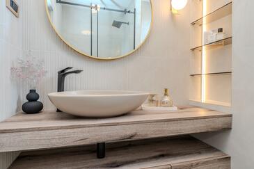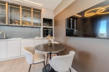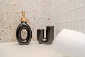 Az Apartman 2 főt tud fogadni. Az ágyak a/az 1 hálószobában vannak, melynek méretei 38m2. A forró nyári estéket a vendégek saját balkonukon élvezhetik. Az apartmanból tengerre néző kilátás nyílik. A közös barbecue-helyet a vendég szabadon használhatja.