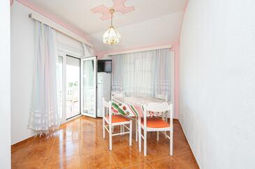 Az Apartman 6 főt tud fogadni. Az ágyak a/az 3 hálószobában vannak, melynek méretei 52m2. A forró nyári estéket a vendégek saját teraszukon élvezhetik. Az apartmanból tengerre néző kilátás nyílik. A közös barbecue-helyet a vendég szabadon használhatja.