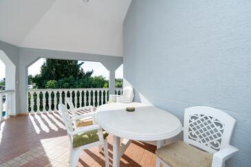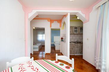 Az Apartman 6 főt tud fogadni. Az ágyak a/az 3 hálószobában vannak, melynek méretei 52m2. A forró nyári estéket a vendégek saját teraszukon élvezhetik. Az apartmanból tengerre néző kilátás nyílik. A közös barbecue-helyet a vendég szabadon használhatja.