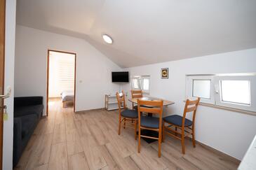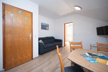 Az Apartman 5 főt tud fogadni. Az ágyak a/az 1 hálószobában, és a nappaliban/ben vannak, melynek méretei 32m2. A forró nyári estéket a vendégek saját balkonukon élvezhetik. Az apartmanból tengerre néző kilátás nyílik. A közös barbecue-helyet a vendég szabadon használhatja. A szállásegységbe lehetséges háziállatot hozni felár ellenében.