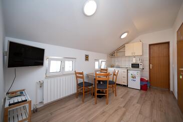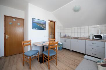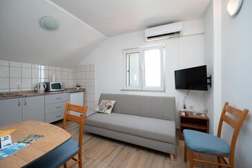 Az Apartman 5 főt tud fogadni. Az ágyak a/az 1 hálószobában, és a nappaliban/ben vannak, melynek méretei 32m2. A forró nyári estéket a vendégek saját balkonukon élvezhetik. Az apartmanból tengerre néző kilátás nyílik. A közös barbecue-helyet a vendég szabadon használhatja. A szállásegységbe lehetséges háziállatot hozni felár ellenében.
