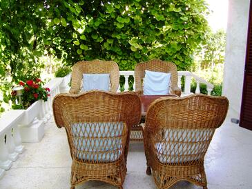 Az Apartman 8 főt tud fogadni. Az ágyak a/az 4 hálószobában vannak, melynek méretei 120m2. A forró nyári estéket a vendégek saját teraszukon élvezhetik. Az apartmanból tengerre néző kilátás nyílik. A közös barbecue-helyet a vendég szabadon használhatja. A szállásegységbe lehetséges háziállatot hozni, ennek költségét a foglalási díj tartalmazza.