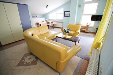Az Apartman 4 főt tud fogadni. Az ágyak a/az 2 hálószobában vannak, melynek méretei 48m2. A forró nyári estéket a vendégek saját teraszukon élvezhetik. Az apartmanból tengerre néző kilátás nyílik. A közös barbecue-helyet a vendég szabadon használhatja.