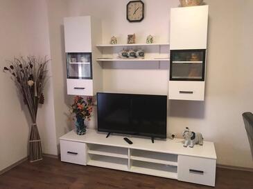 Az Apartman 9 főt tud fogadni. Az ágyak a/az 3 hálószobában vannak, melynek méretei 100m2. A forró nyári estéket a vendégek saját teraszukon élvezhetik. Az apartmanból tengerre néző kilátás nyílik. A közös barbecue-helyet a vendég szabadon használhatja. A szállásegységbe lehetséges háziállatot hozni felár ellenében.