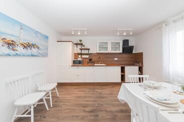 Az Apartman 6 főt tud fogadni. Az ágyak a/az 2 hálószobában, és a nappaliban/ben vannak, melynek méretei 100m2. A forró nyári estéket a vendégek saját balkonukon élvezhetik. A teljes élvezet és kikapcsolódás érdekében van saját barbecue hely is, csakis e szálláshely vendégei számára.