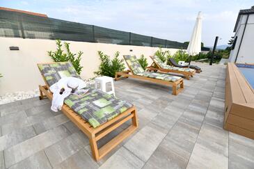 Az Ház 6 főt tud fogadni. Az ágyak a/az 2 hálószobában, és a nappaliban/ben vannak, melynek méretei 140m2. A forró nyári estéket a vendégek saját teraszukon élvezhetik. A teljes élvezet és kikapcsolódás érdekében van saját barbecue hely is, csakis e szálláshely vendégei számára. A vendégek itt tartózkodásuk ideje alatt használhatják a közös medencét.