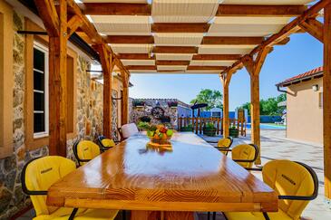 Az Ház 6 főt tud fogadni. Az ágyak a/az 2 hálószobában, és a nappaliban/ben vannak, melynek méretei 71m2. A forró nyári estéket a vendégek saját teraszukon élvezhetik. A teljes élvezet és kikapcsolódás érdekében van saját barbecue hely is, csakis e szálláshely vendégei számára. A vendégek itt tartózkodásuk ideje alatt kikapcsolódás céljából használhatják a magán medencét.